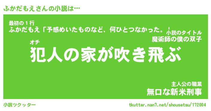 | 男性向けラノベタイトル風あだ名 | 『フカダモエアートオンライン』 |