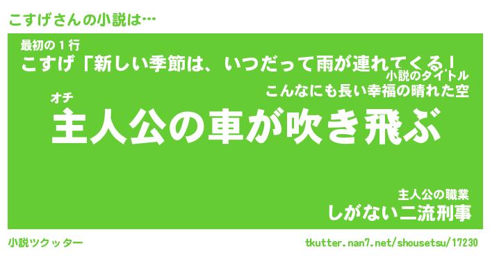 | 男性向けラノベタイトル風あだ名 | 『こすげの憂鬱』 |