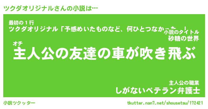| 男性向けラノベタイトル風あだ名 | 『ツクダオリジナルアートオンライン』 |