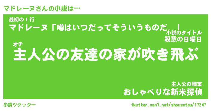 | 胡散臭い通販商品みたいなあだ名 | 『モテモテ間違いなし霊験あらたかなお札…その名も「マドレーヌ」』 |