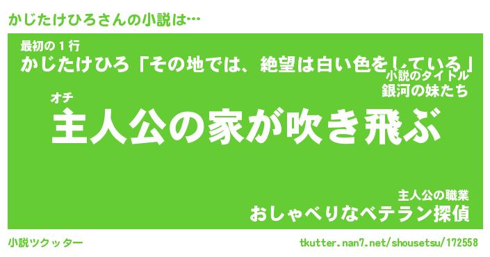 | 男性向けラノベタイトル風あだ名 | 『かじたけひろの憂鬱』 |
