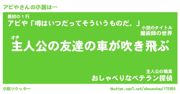 | 胡散臭い通販商品みたいなあだ名 | 『億万長者になれるブレスレット…その名も「アビや」』 |