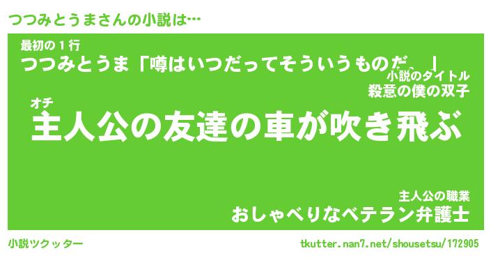 | 男性向けラノベタイトル風あだ名 | 『ツツミトウマアートオンライン』 |