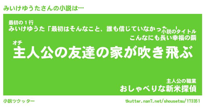 | 男性向けラノベタイトル風あだ名 | 『みいけゆうたの憂鬱』 |