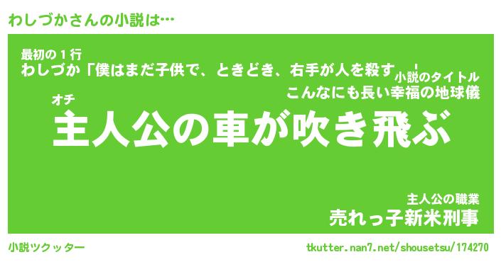 | 男性向けラノベタイトル風あだ名 | 『わしづかの憂鬱』 |
