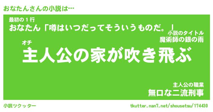 | 魚たちの銀の雨WW …「ケモノ」 | 10月27日 05:47 |