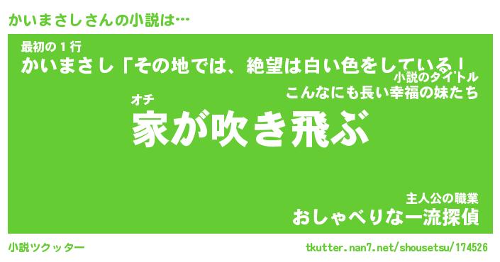 | 男性向けラノベタイトル風あだ名 | 『かいまさしの憂鬱』 |