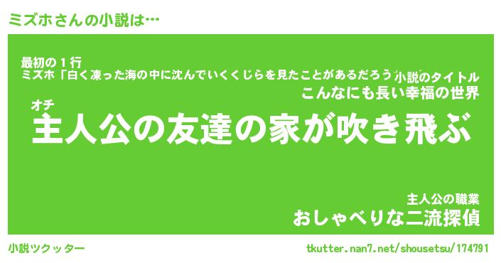 | 胡散臭い通販商品みたいなあだ名 | 『モテモテ間違いなし霊験あらたかなお札…その名も「ミズホ」』 |