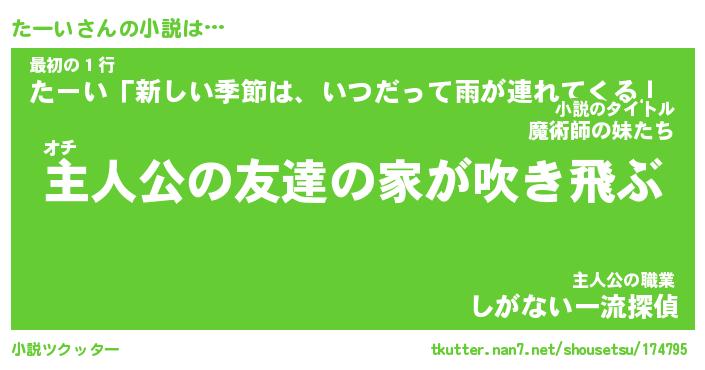 | 男性向けラノベタイトル風あだ名 | 『たーいの憂鬱』 |