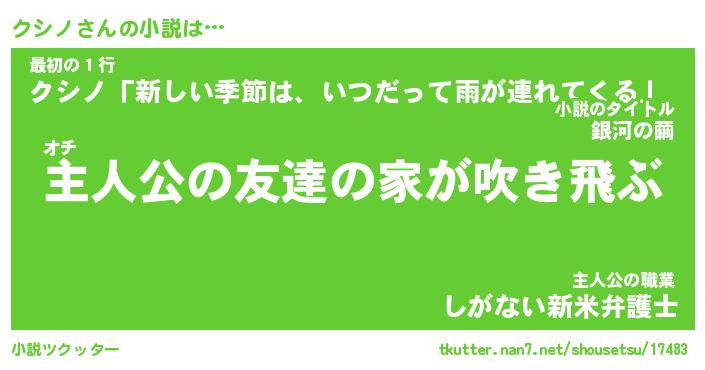 | 魚たちの銀の雨WW …「ケモノ」 | 10月27日 05:47 |