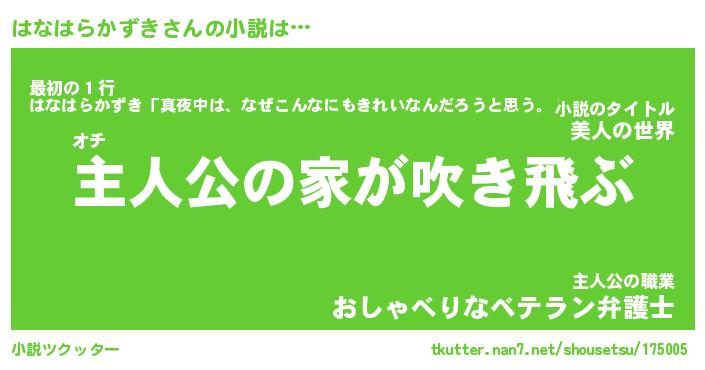 | 男性向けラノベタイトル風あだ名 | 『はなはらかずきの憂鬱』 |