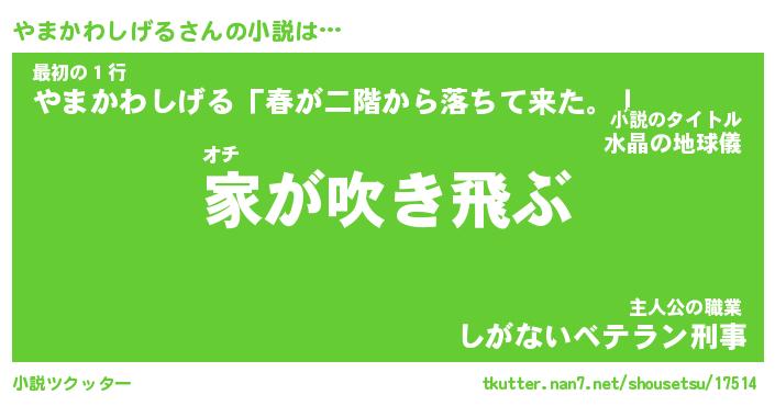 | 男性向けラノベタイトル風あだ名 | 『やまかわしげるの憂鬱』 |