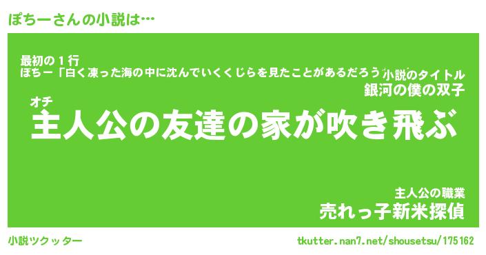 | 男性向けラノベタイトル風あだ名 | 『ぽちーの憂鬱』 |