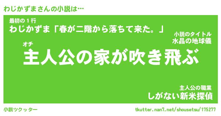 | 胡散臭い通販商品みたいなあだ名 | 『必ず成功する水晶球…その名も「わじかずま」』 |