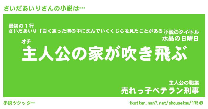 | 男性向けラノベタイトル風あだ名 | 『さいだあいりの憂鬱』 |