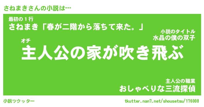 | 胡散臭い通販商品みたいなあだ名 | 『必ず成功するブレスレット…その名も「さねまき」』 |
