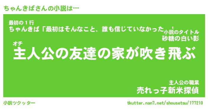 | 男性向けラノベタイトル風あだ名 | 『ちゃんきばの憂鬱』 |