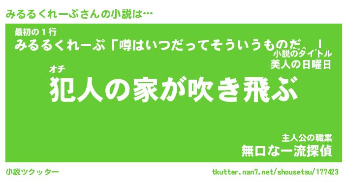 | 胡散臭い通販商品みたいなあだ名 | 『億万長者になれるブレスレット…その名も「みるるくれーぷ」』 |