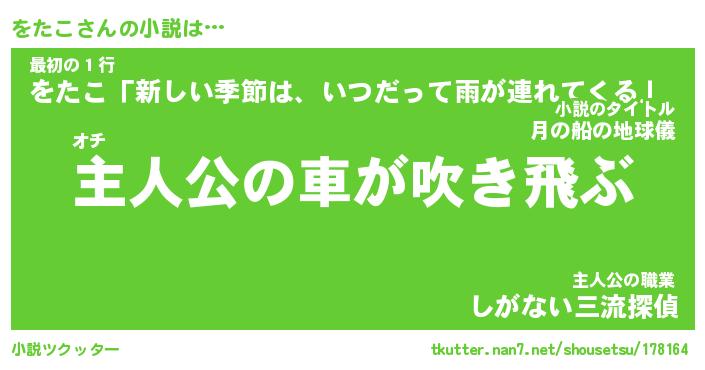 | 男性向けラノベタイトル風あだ名 | 『をたこの憂鬱』 |