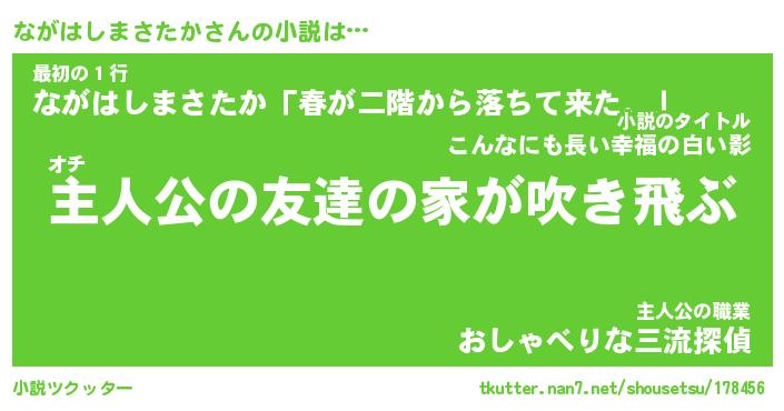 | 男性向けラノベタイトル風あだ名 | 『ながはしまさたかの憂鬱』 |