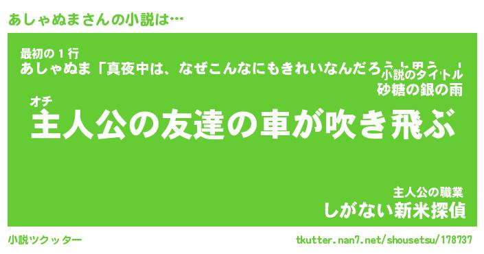 | 魚たちの銀の雨WW …「ケモノ」 | 10月27日 05:47 |