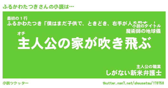 | 男性向けラノベタイトル風あだ名 | 『ふるかわたつきの憂鬱』 |