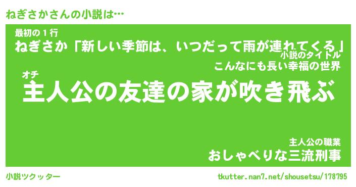 | 男性向けラノベタイトル風あだ名 | 『ねぎさかの憂鬱』 |