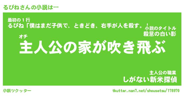 | 胡散臭い通販商品みたいなあだ名 | 『必ず成功するブレスレット…その名も「るぴね」』 |