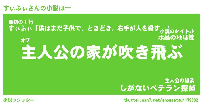 | 男性向けラノベタイトル風あだ名 | 『すぃふぃの憂鬱』 |