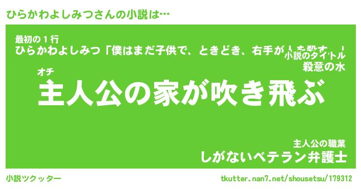 | 男性向けラノベタイトル風あだ名 | 『ひらかわよしみつの憂鬱』 |