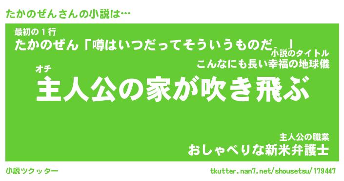 | 胡散臭い通販商品みたいなあだ名 | 『必ず成功するブレスレット…その名も「たかのぜん」』 |
