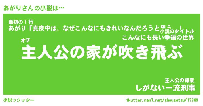 | 男性向けラノベタイトル風あだ名 | 『あがりの憂鬱』 |