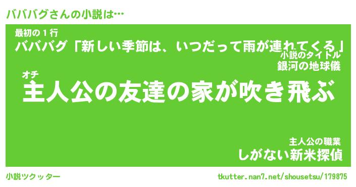 | 男性向けラノベタイトル風あだ名 | 『バババグアートオンライン』 |
