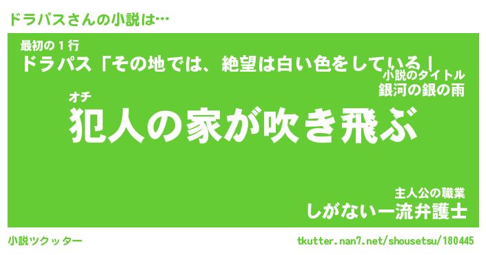 | 胡散臭い通販商品みたいなあだ名 | 『億万長者になれる霊験あらたかなお札…その名も「ドラパス」』 |