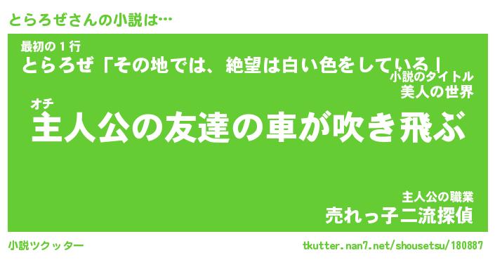 | 胡散臭い通販商品みたいなあだ名 | 『億万長者になれるブレスレット…その名も「とらろぜ」』 |