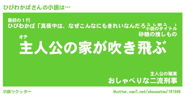 | 魚たちの銀の雨WW …「ケモノ」 | 10月27日 05:47 |