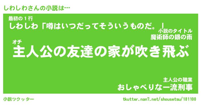 | 魚たちの銀の雨WW …「ケモノ」 | 10月27日 05:47 |