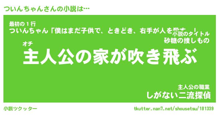 | 男性向けラノベタイトル風あだ名 | 『ついんちゃんの憂鬱』 |