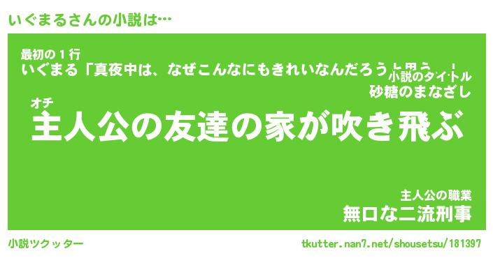 | 男性向けラノベタイトル風あだ名 | 『いぐまるの憂鬱』 |