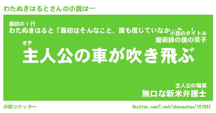 | 男性向けラノベタイトル風あだ名 | 『わたぬきはるとの憂鬱』 |