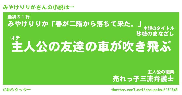 | ツイッター | みやけりりかさんのツイッターID『dendenmushi_star』 |