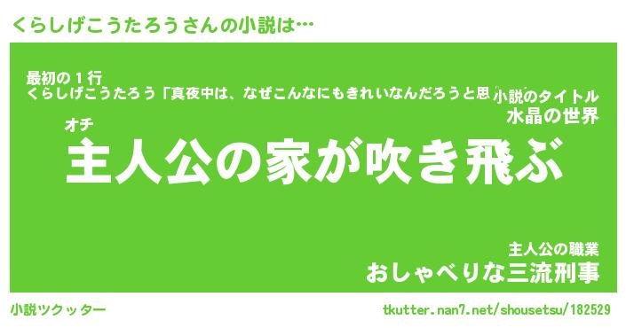 | 男性向けラノベタイトル風あだ名 | 『くらしげこうたろうの憂鬱』 |