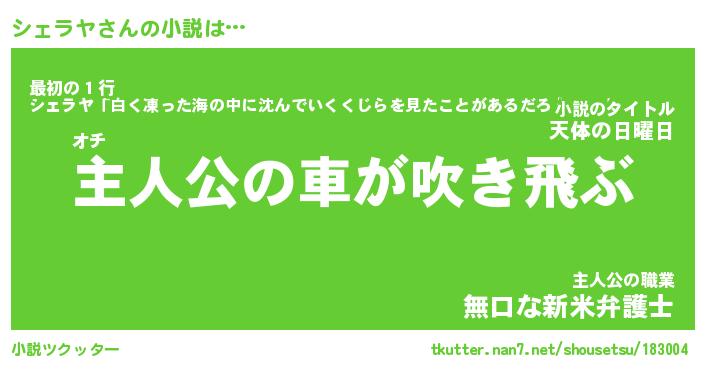 | 男性向けラノベタイトル風あだ名 | 『シェラヤの憂鬱』 |