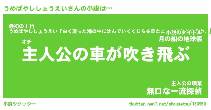 | 男性向けラノベタイトル風あだ名 | 『うめばやししょうえいの憂鬱』 |