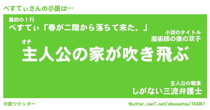 | 男性向けラノベタイトル風あだ名 | 『べすてぃの憂鬱』 |