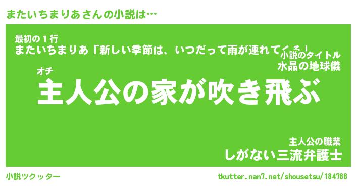 | 男性向けラノベタイトル風あだ名 | 『またいちまりあの憂鬱』 |