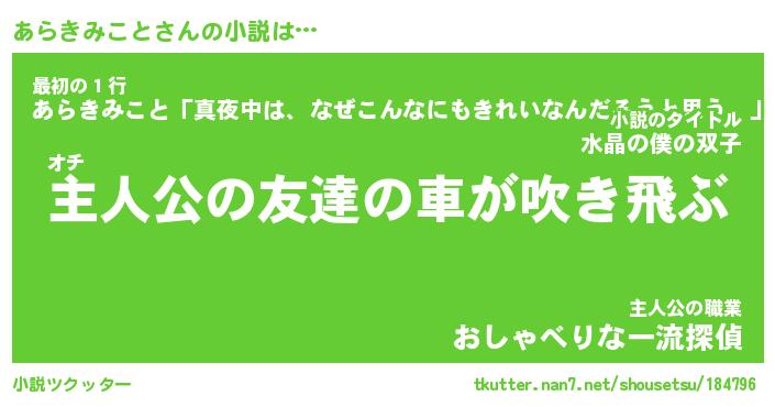 | 男性向けラノベタイトル風あだ名 | 『アラキミコトアートオンライン』 |