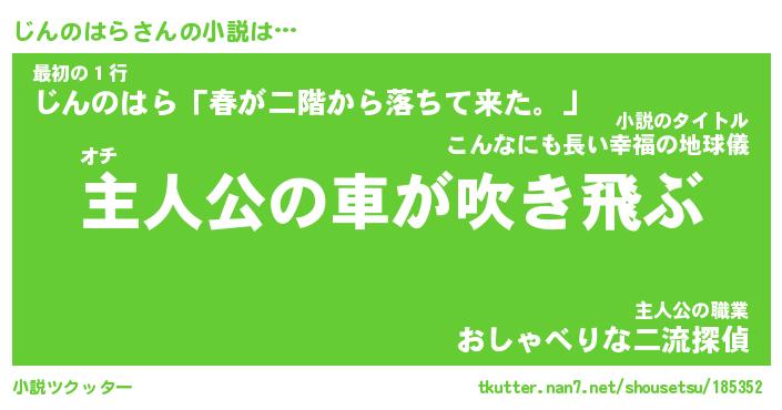 | 男性向けラノベタイトル風あだ名 | 『じんのはらの憂鬱』 |