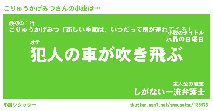 | 男性向けラノベタイトル風あだ名 | 『コリュウカゲミツアートオンライン』 |