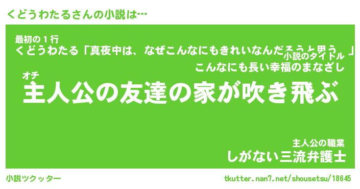 | 男性向けラノベタイトル風あだ名 | 『くどうわたるの憂鬱』 |